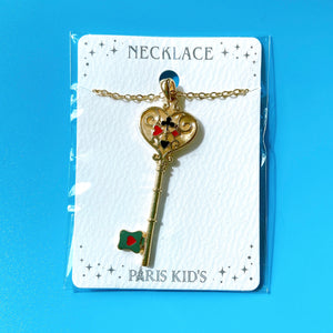 Paris Kids Alice in Wonderland gold colour key necklace.Material: metal. Key measurements: 5 x 1.7 x 0.3 cm