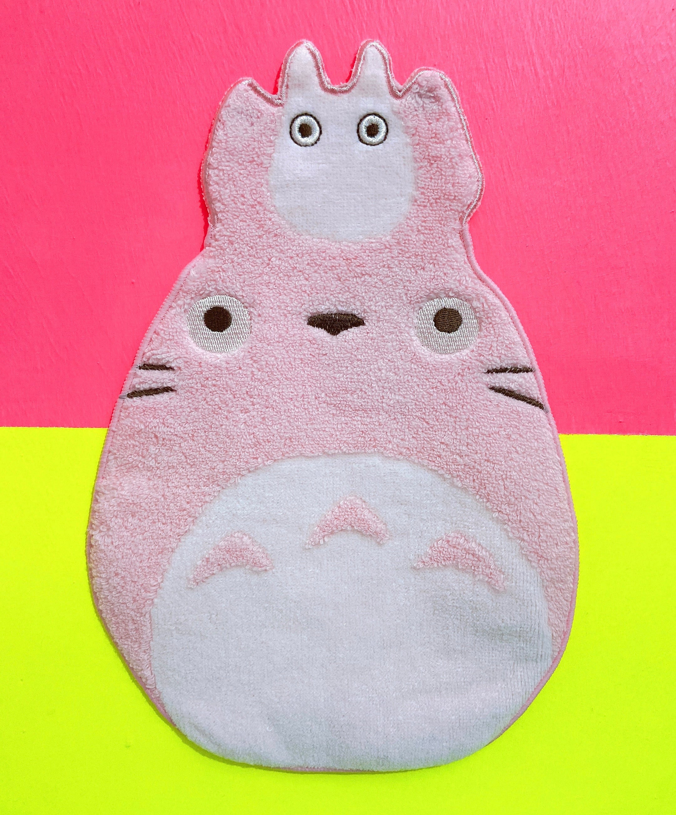 Rare pink Totoro face cloth. Made of super soft towling material with embroidered detailing on the eyes, nose and whiskers.